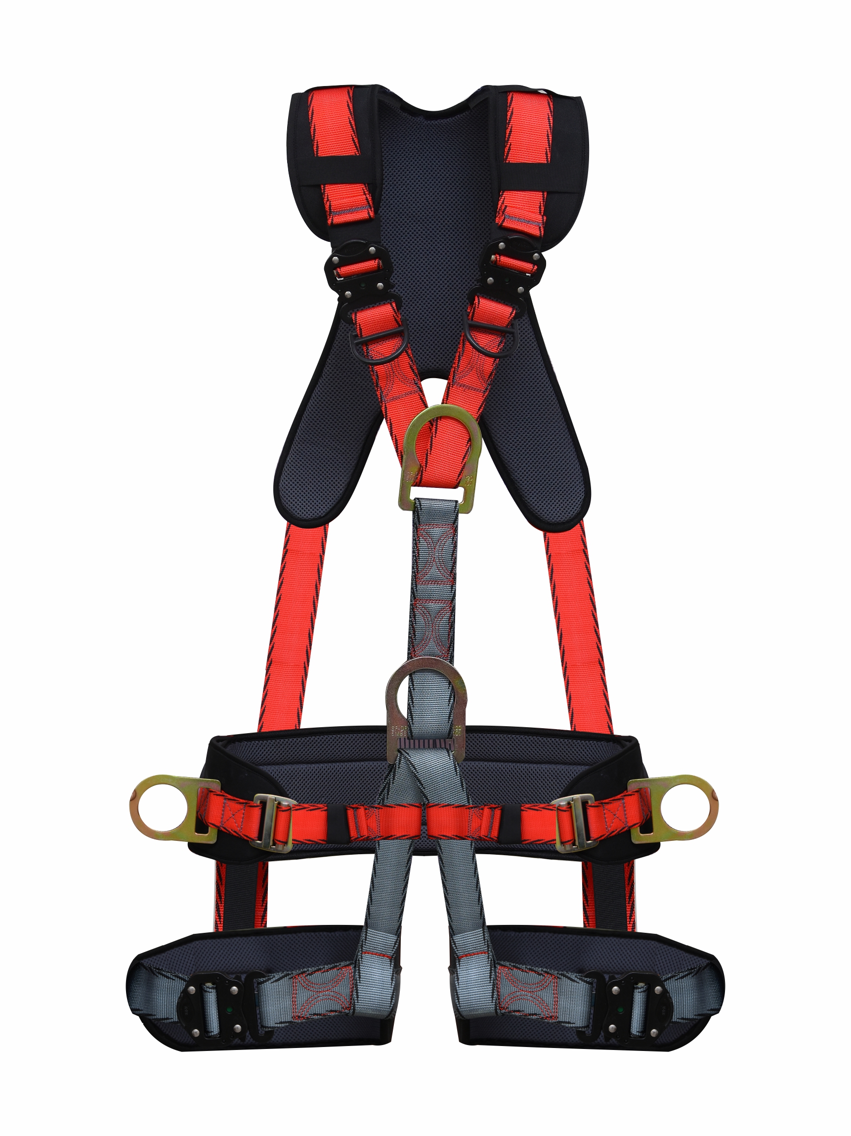 Made up of high tenacity polyester 1 Back D-ring for Fall Arrest, and 2 D-rings at the waist level for Positioning 5 point adjustability