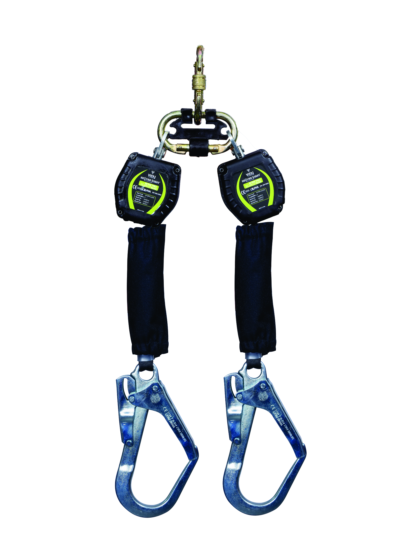 Having a Twin SRL connector reference no- SF-1609 it reduces the length of swing during the fall there by preventing the impact of S R L on the back of the user’s Head.