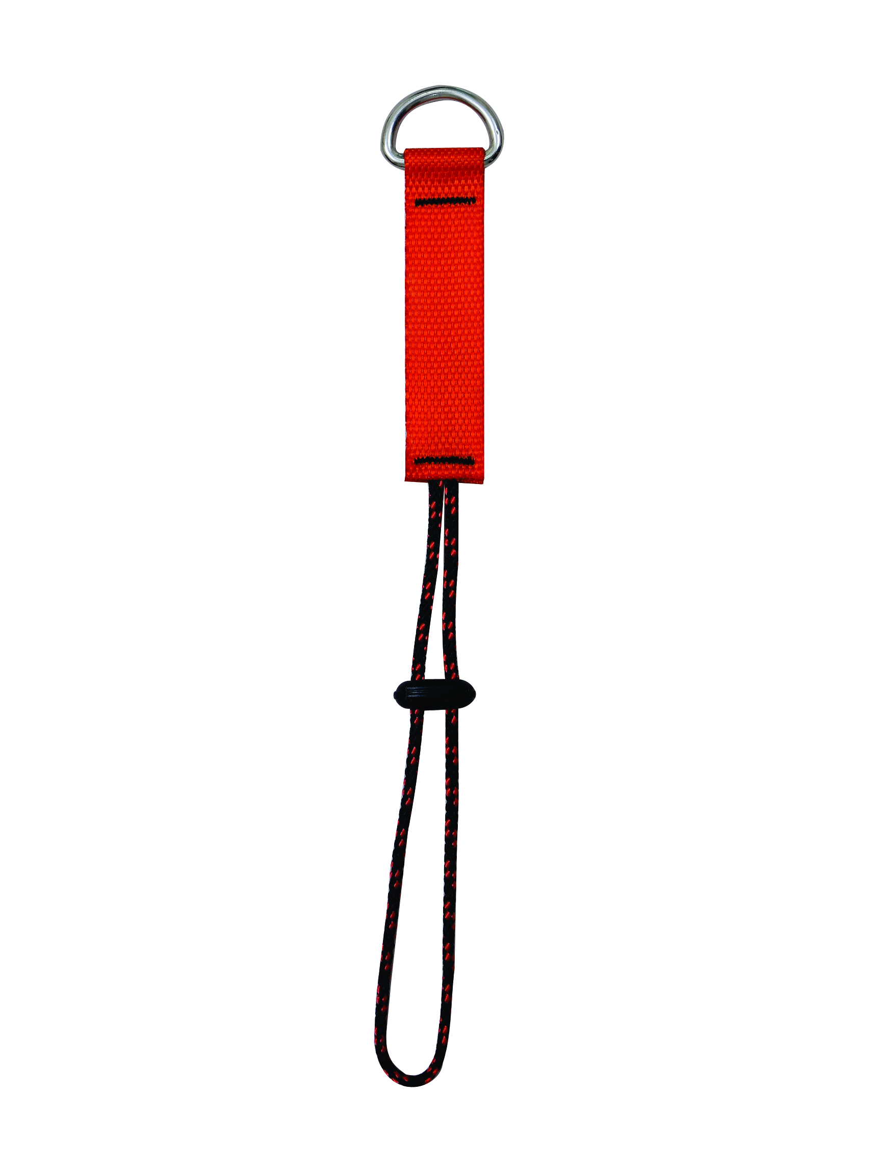 Small tool attachment made in 4.5″ polyester webbing with D-ring at one end and folded end at other end